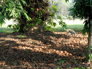 Within the grounds of Belvedere Palace (now the National Library of India campus), perhaps near the spot where Warren Hastings and Philip Francis had their famous (and non-fatal) duel in 1780, stands a wonderful Cannon Ball Tree, guarded by an alert hound. Many a 'cannon ball' from past 'armaments production' lie beneath, adding to the pleasing and picturesque aspect of this fascinating plant.
